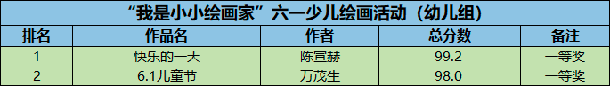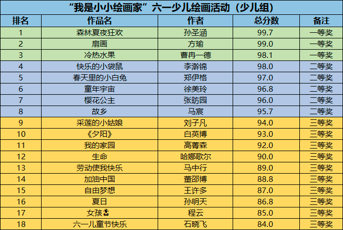 本次参赛组别分为幼儿组和少儿组,均已评出获奖者。奖品将采用线上邮寄,寄送到各位获奖者手中,近期工作人员会统计获奖者邮寄信息,现将获奖名单公布如下: